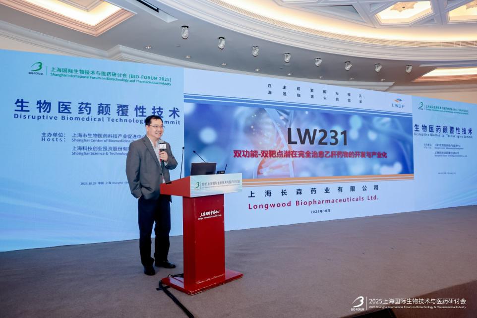 近日,长森药业创始人王喆博士受邀参加BIO-FORUM2025会前闭门会:生物医药颠覆性技术研讨会,并在活动中作“双功能-双靶点潜在完全治愈乙肝药物的开发与产业化”主题分享。